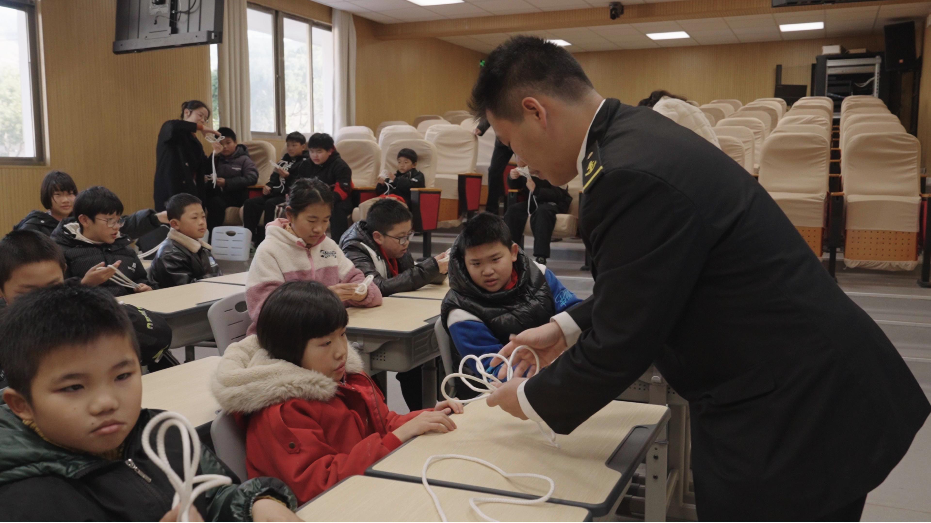 实践队成员为海岛中心小学学生讲授海上绳结技艺