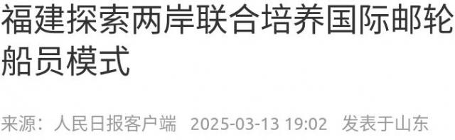 2023年9月,厦门出台《关于支持鼓励台胞来厦参加船员培训和申请证书的若干措施》,为台胞来厦参加船员培训、考取大陆颁发的船员证书,创造了更加便利的条件。截至目前,已有超400名台胞来厦参加培训并考取船员证书,其中青年占比超过80%。
