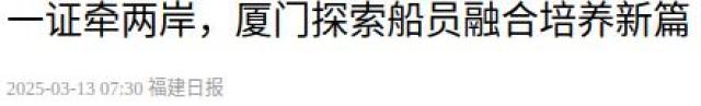 2023年9月,厦门出台《关于支持鼓励台胞来厦参加船员培训和申请证书的若干措施》,为台胞来厦参加船员培训、考取大陆颁发的船员证书,创造了更加便利的条件。截至目前,已有超400名台胞来厦参加培训并考取船员证书,其中青年占比超过80%。
