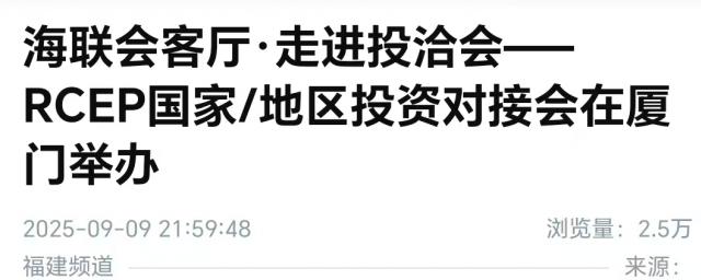 9月9日下午,第二十五届中国国际贸易投资洽谈会的配套活动之一,“海联会客厅走进投洽会——RCEP国家/地区投资对接会”在厦门举办。活动汇聚了来自菲律宾、马来西亚、韩国、印度尼西亚、缅甸、日本的多位官方代表与中国企业代表,共商贸易投资合作。
