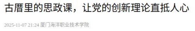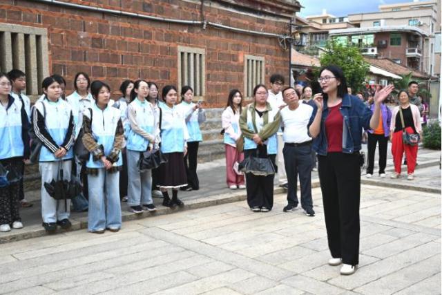 厦海职院马克思主义学院王静老师带领师生和干部群众追忆了厦金共抗外敌的峥嵘岁月,探寻“一国两制”实践与祖国统一大业的历史根脉与时代意义,体悟两岸统一的必然性早已深深植根于文化根基与民族共识之中,要以古厝为鉴,以初心为炬,在推动祖国统一的进程中践行使命担当,为实现中华民族伟大复兴的中国梦凝聚起两岸青年同心同向的力量。