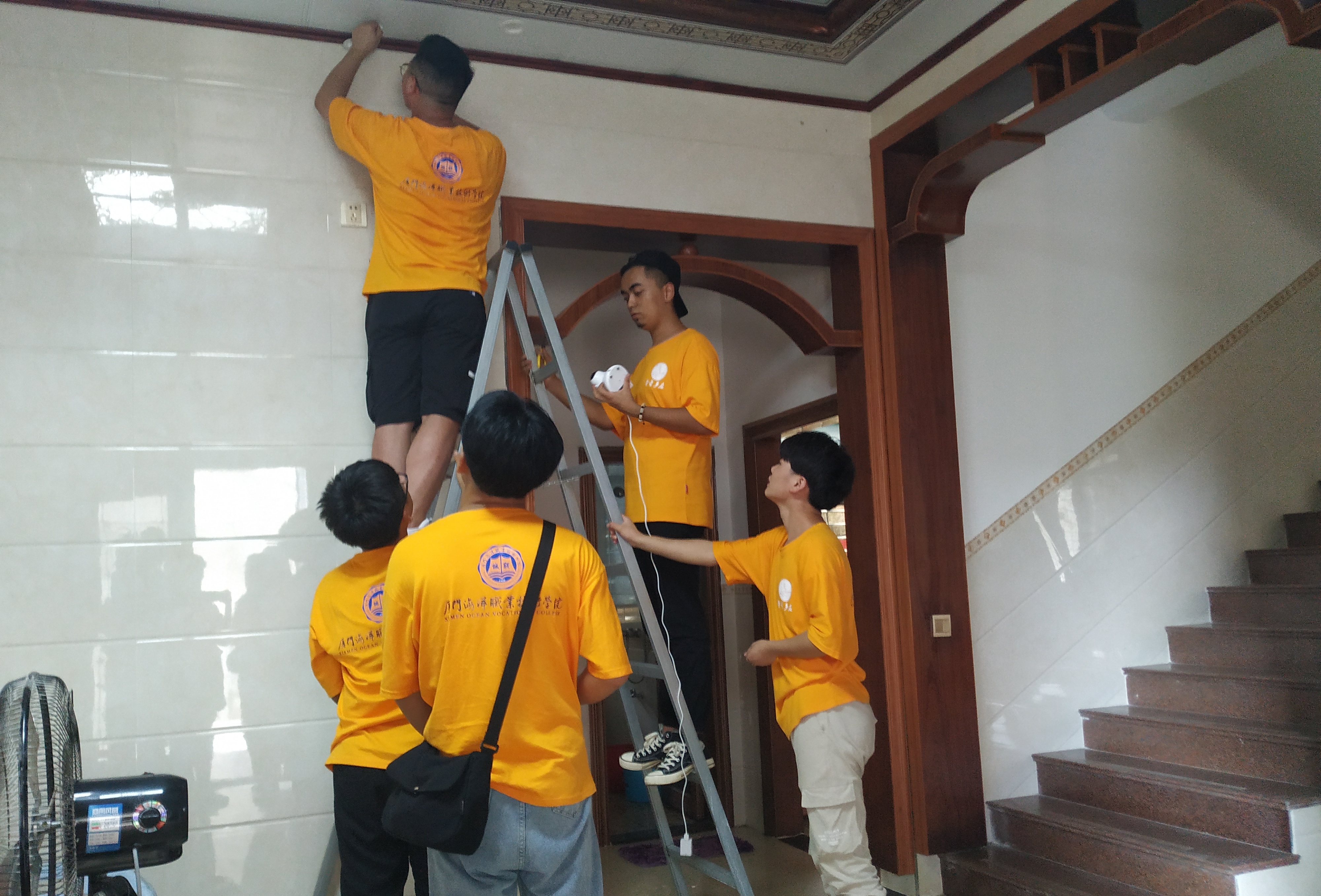 在村委会的帮助下,队员们为留守儿童和空巢老人家庭免费安装智能高清摄像头,使在外打工的父母、子女通过手机APP连接摄像头,与家中亲人可视通话,联络亲情,看护健康。队员们还为家境贫寒的村民免费安装LED灯,并教儿童写字、画画、折纸,开展“关爱乡村儿童,从我做起”公益活动。漳州新闻网对活动进行了跟踪报道。