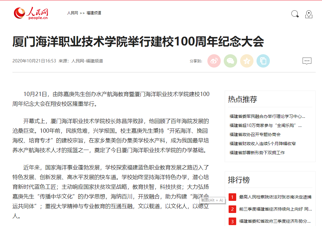 10月21日,由陈嘉庚先生创办水产航海教育暨雷竞技主页建校100周年纪念大会在翔安校区隆重举行。