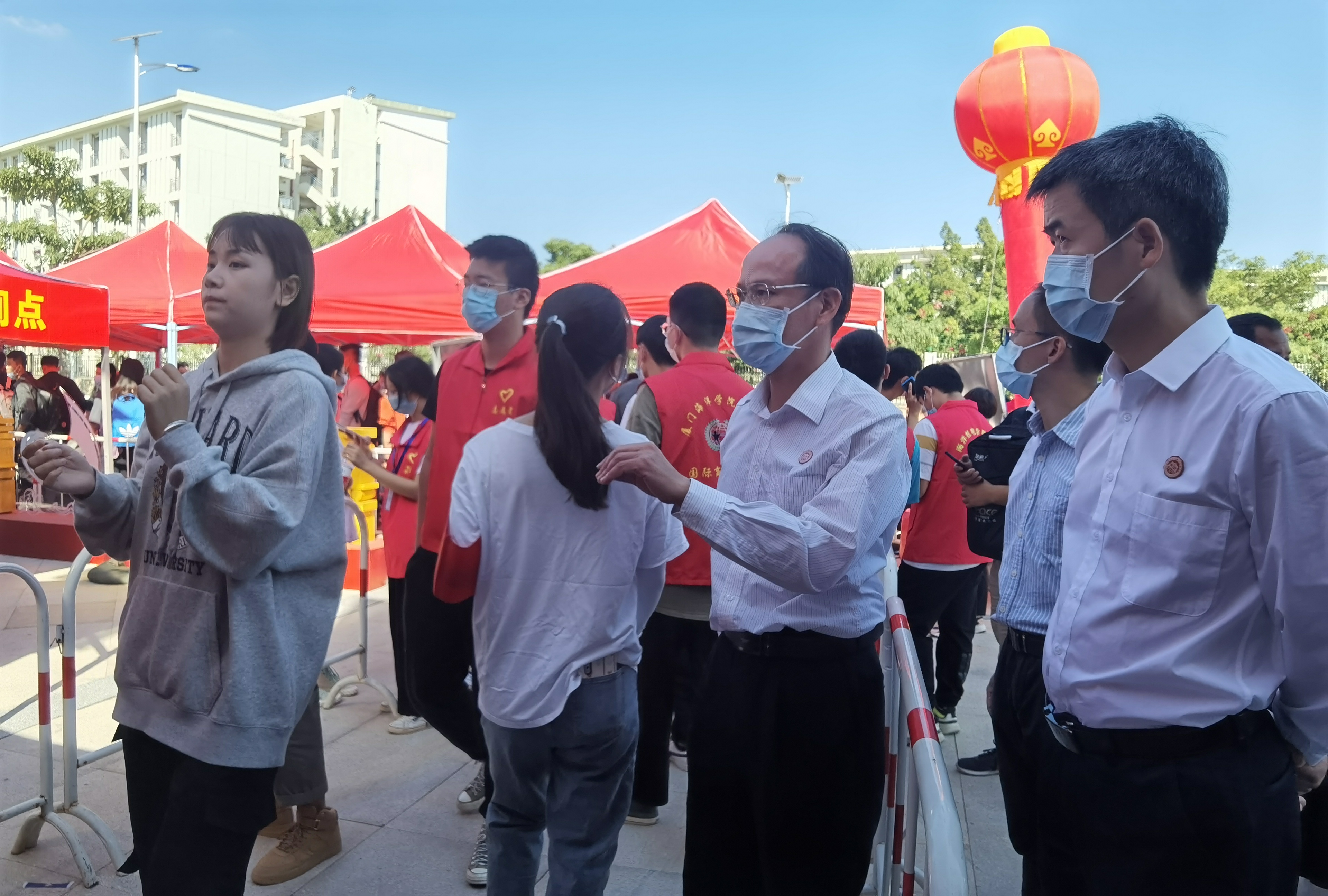 据悉,学校高度重视迎新工作,学工部牵头召开多次协调会和动员会,对迎新工作进行周密部署,确保疫情防控不松懈,有条不紊迎开学。10月26日晚,党委书记陈一端、党委副书记汤忠民分别率队到翔安校区、思明校区检查宿舍卫生情况。