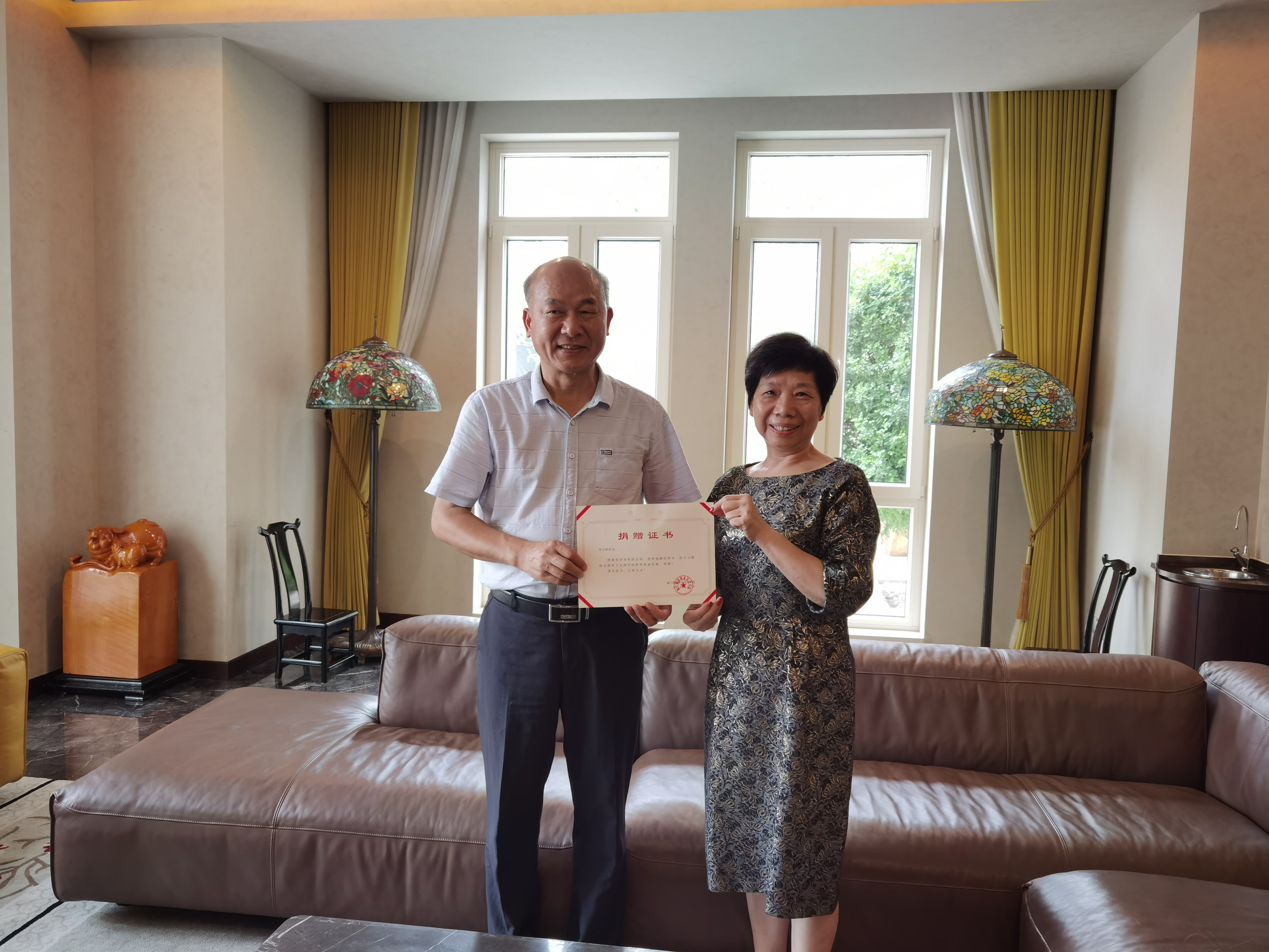 11月20日,党委副书记、校友会会长汤忠民走访厦门豪客来投资控股有限公司法人代表、我校制冷791校友章小龄女士,颁发捐赠证书。