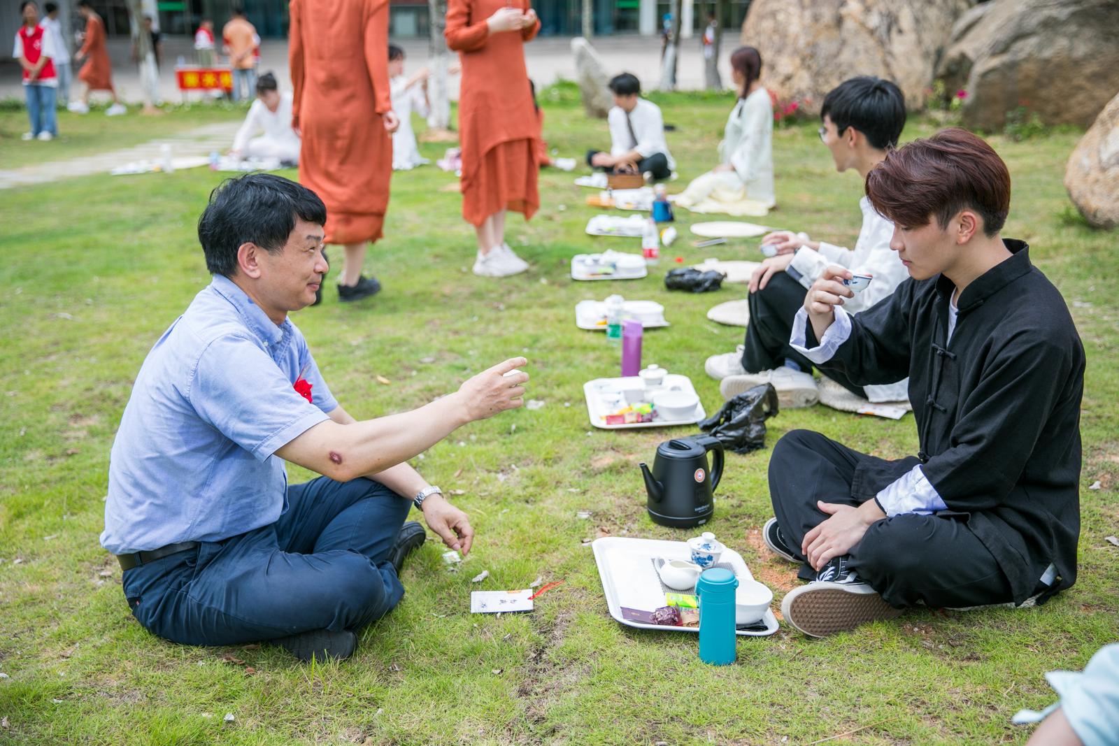 活动现场以“无我茶会”为主,100名师生、企业代表着茶服,席地而坐,人人泡茶,人人敬茶,人人品茶,以茶为媒,广为联谊,一味同心,开启一场精彩的茶文化盛宴。活动现场还设置了茶叶鉴赏区、茶艺表演区,供师生在品茶香茗开展茶文化交流。