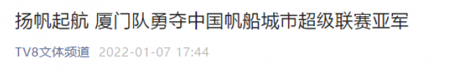 【TV8体育频道】扬帆起航 厦门队勇夺中国帆船城市超级联赛亚军
