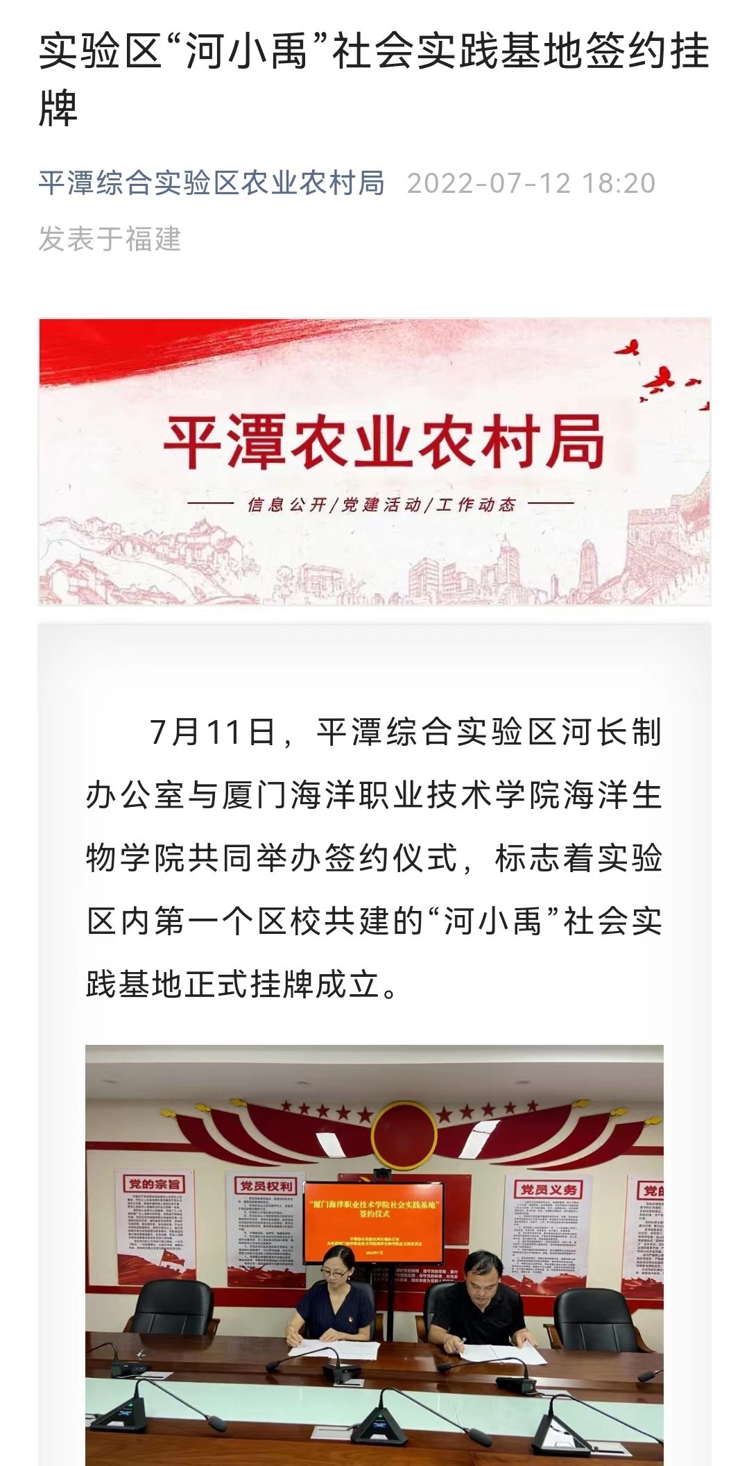 【平潭综合实验区农业农村局】实验区“河小禹”社会实践基地签约挂牌