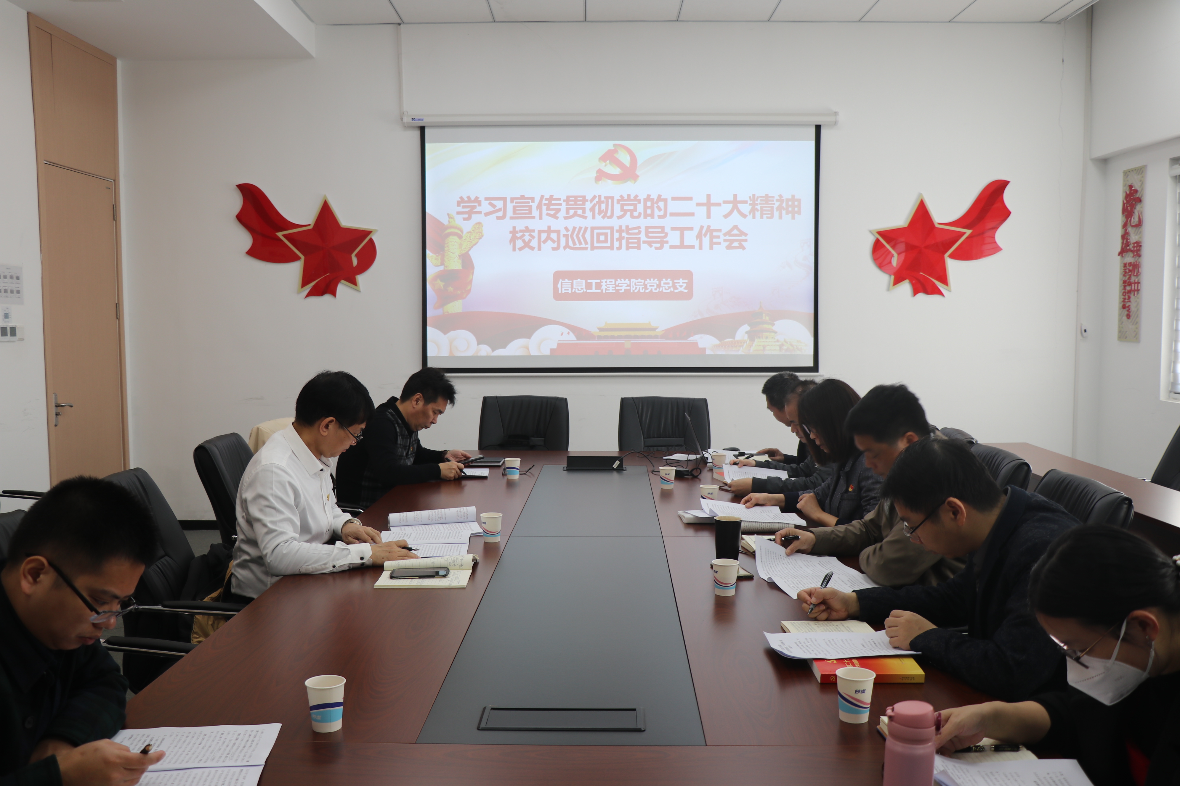 3月1日,校党委书记陈一端率学习宣传贯彻党的二十大精神巡回指导组莅临信息工程学院,检查指导信息工程学院学习宣传贯彻党的二十大精神情况。信息工程学院党总支委员、支部书记参加。