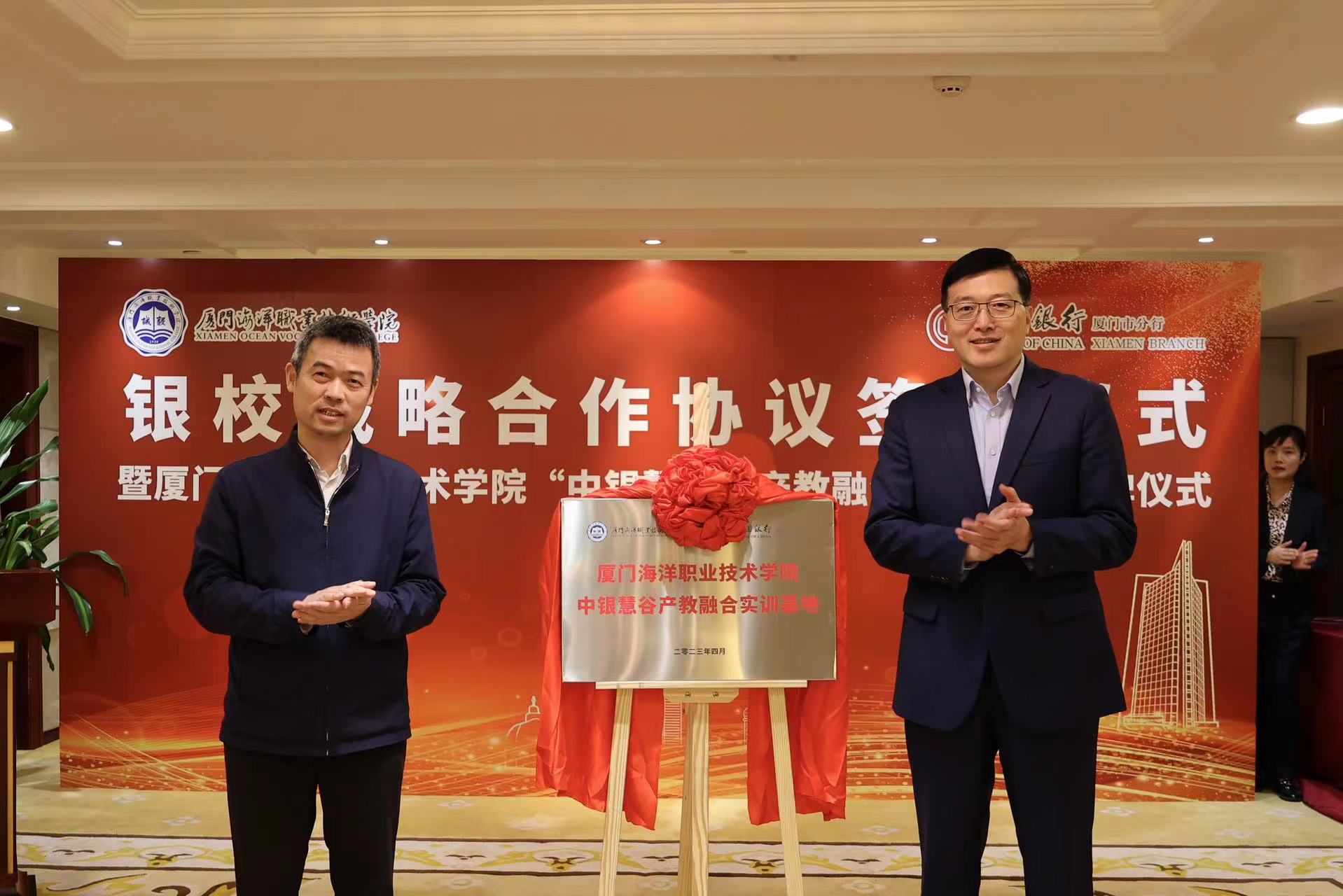 签约仪式上,陈昌萍、聂林为“中银慧谷——产教融合实训基地”揭牌。马国玄、吴文萍代表双方签署《雷竞技主页 中国银行厦门市分行战略合作协议》。根据协议,银校双方将在对外交流合作、人才培养、乡村振兴、智慧校园建设等多领域开展广泛和深入合作,共建共同探索银校全方位合作的新模式,助推金融支持职业教育高质量发展。