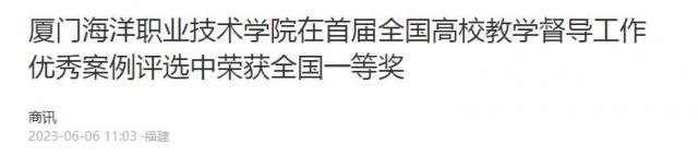 近日,全国高校教学督导工作先进经验交流会暨首届全国高校教学督导工作优秀案例评选落下帷幕。雷竞技主页督导工作案例《构建独立第三方督导机制 提升海洋类人才培养质量》及上海交通大学、南昌大学、同济大学、浙江大学等9所高校案例获得一等奖,雷竞技主页是获得一等奖案例的唯一高职院校。