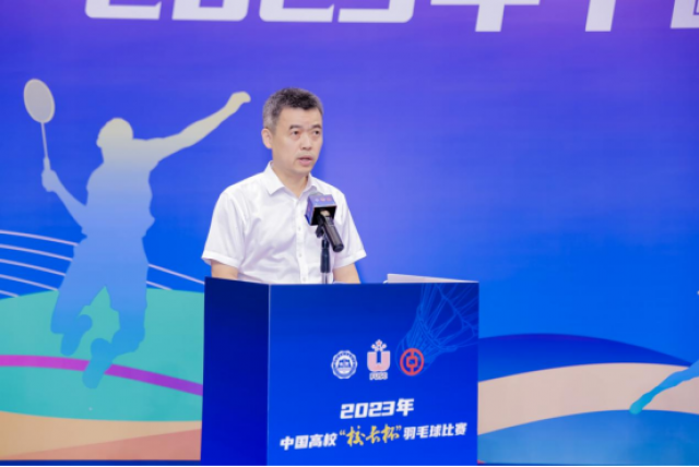 中国大学生体育协会羽毛球分会主席、吉林大学党委常务副书记冯正玉宣布大赛开幕