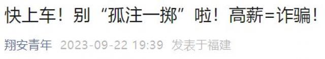 【翔安青年】快上车!别“孤注一掷”啦!高薪=诈骗!