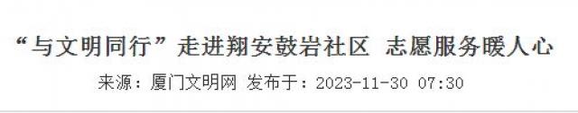 优雅的旗袍秀、精彩的乐器合奏、动听的闽南童谣、青春活力的韵律操……11月28日,2023年厦门市“与文明同行进社区”系列活动走进翔安区金海街道鼓岩社区。现场不仅有精彩的文艺演出,还有暖心的公益服务,主办方还通过知识抢答的方式,将文明礼仪和文明创建知识传递给广大群众。