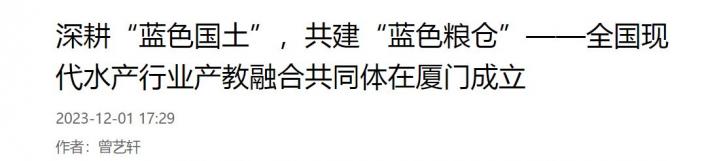 其中,人才培养改革成果获得2022年国家级教学成果二等奖,支农强农工作经验获评“全球最佳减贫案例”,水产养殖技术和智慧渔业技术远播全国各地及26个“一带一路”沿线国家。目前,学校正在全力创建全国第一所职业教育类型海洋大学。“全国现代水产行业产教融合共同体的成立有效聚集了行业各方的创新要素,也为我校加快创建‘厦门海洋职业大学’注入强劲动力。我校将切实担负责任使命,与各方行业同仁一道为国家海洋经济高质量发展助力赋能。”厦门海洋职业学院院长陈昌萍说。