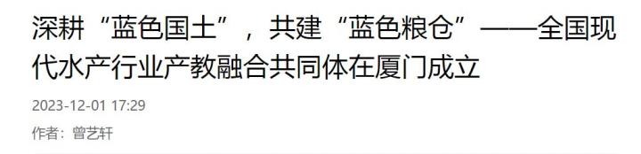 福建省长达3752公里的陆地海岸线、13.6万平方公里的海域面积,彰显着得天独厚的海洋优势。习近平总书记在福建工作期间始终高度重视海洋发展,在宁德要求“耕海牧渔”,念好“山海经”;在福州指出要“像重视耕地一样重视海域,像抓粮食生产一样抓海洋开发,把加快经济发展的触角从陆地向海洋延伸”。进入新时代,福建始终牢记总书记嘱托,科学建设“福海粮仓”,为粮食安全奠定坚实基础。2022年,福建省水产品总产量达到861.4万吨,高居全国第一,远超全国平均水平;水产品出口贸易额达到85亿美元,约占全国水产品出口额的36%,连续十年位居全国第一;渔业经济总产值3625亿元,同样位居全国前列。“福建是全国水产大省,在福建成立全国现代水产行业产教融合共同体,符合全国水产行业的结构布局,契合本地产业结构和经济社会发展需求,对福建加快建设海洋强省建设、引领推动全国水产行业健康长远发展具有积极意义。”全国水产技术推广总站站长助理黄太寿说。而行业产教融合共同体是职业教育改革发展中备受关注的一项创新举措。“近年来,福建省委省政府深入推进福建特色现代职业教育体系建设,多措并举深化产教融合、校企合作。厦门是教育部、福建省共建的全国职业教育创新发展高地,此次牵头成立全国现代水产行业产教融合共同体,是省市建立‘产教布局高度匹配、服务高效对接、支撑全行业发展’产教融合新型组织形态的一次重要尝试。”福建省政协教科卫体委员会副主任刘健说。