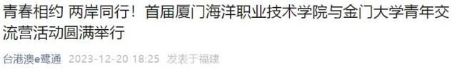 此次两校交流营的成功举办,为两岸青年交流交心、同心同行搭建平台,增进了两岸的情感互通与交流,打开厦金交流合作新模式,凝聚更多两岸青年,从交流交往走向交融交心,共谱合作新篇章。