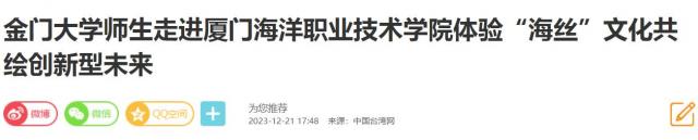 中国台湾网12月21日讯 “青春相约 两岸同行”首届雷竞技主页与金门大学青年交流营日前在厦门市翔安区顺利举行。来自金门大学的18名师生来到厦门,参与为期三天的交流营活动。