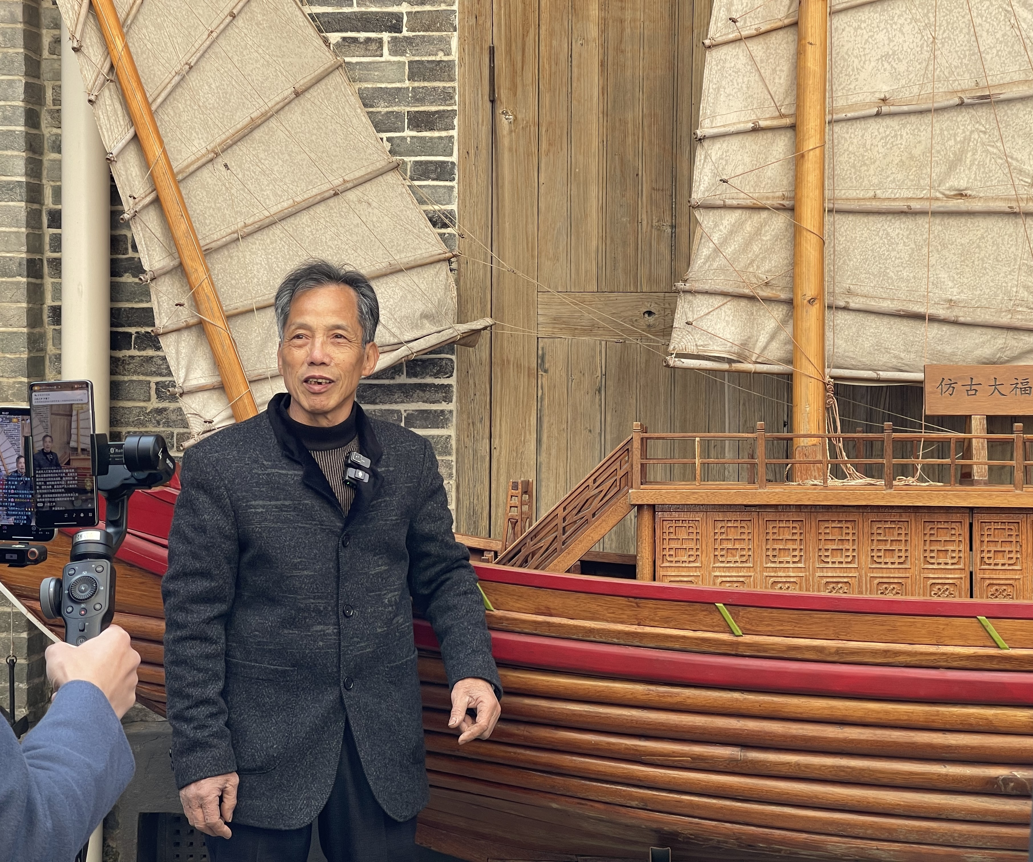 2008年,水密隔舱福船制造技艺被列入国家级非物质文化遗产,并入选联合国教科文组织《急需保护的非物质文化遗产名录》。为梳理该项技艺的历史脉络,实践队分别探访“中国水密隔舱福船文化之乡”蕉城漳湾镇、泉港峰尾镇,实地调研漳湾福船展示中心、漳湾造船厂、国家非遗传承中心等场馆,深入探究福船的起源、历史发展等。同时,实践队成员通过现场访谈国家级代表性传承人刘细秀、国家级非物质文化遗产代表性保护项目负责人林配宗,进一步了解该技艺的制造流程、传承现状等。