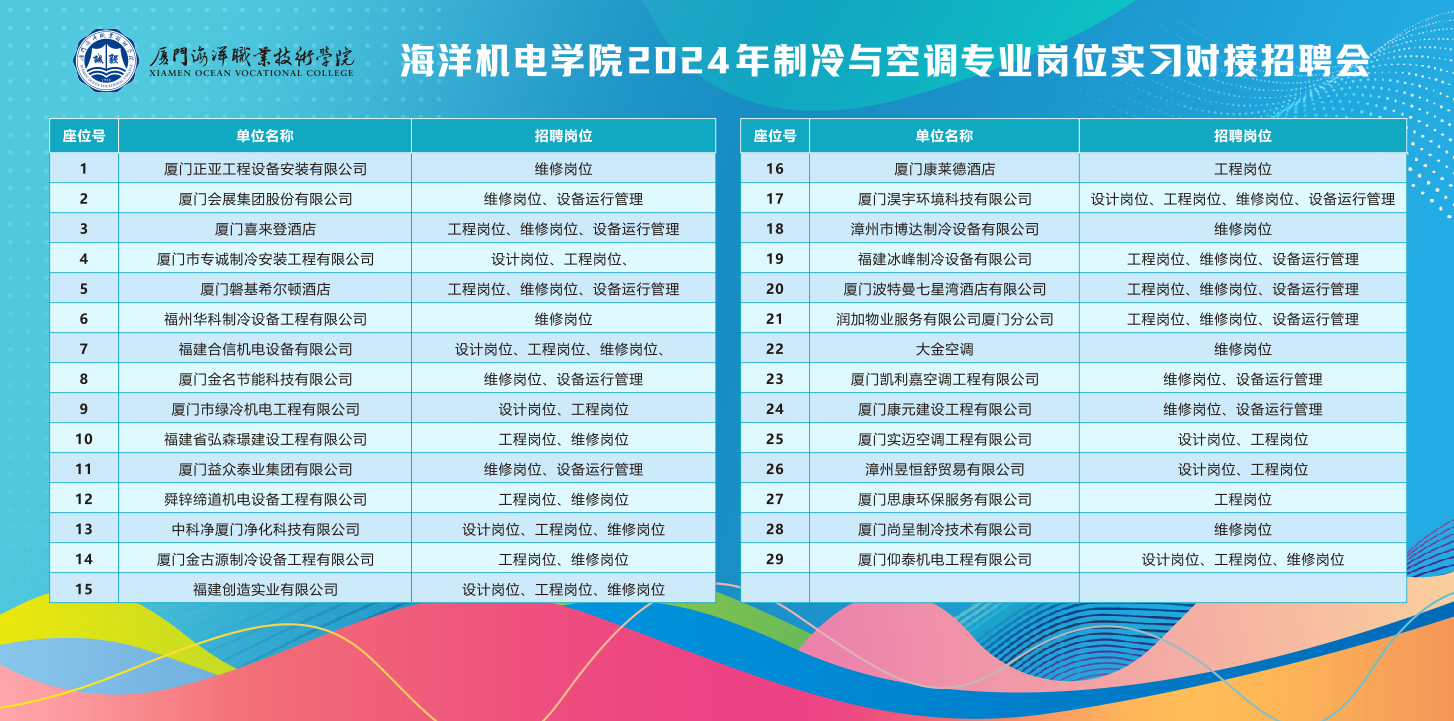 5月14日,海洋机电学院成功举办2024年制冷与空调技术专业岗位实习对接招聘会。此次招聘会吸引了省内30多家知名企业参与,为即将步入实习阶段的学生提供了超过150个实习岗位选择。