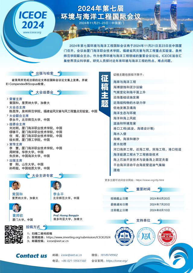 国际学术会议 | 2024年第七届环境与海洋工程国际会议(ICEOE 2024)