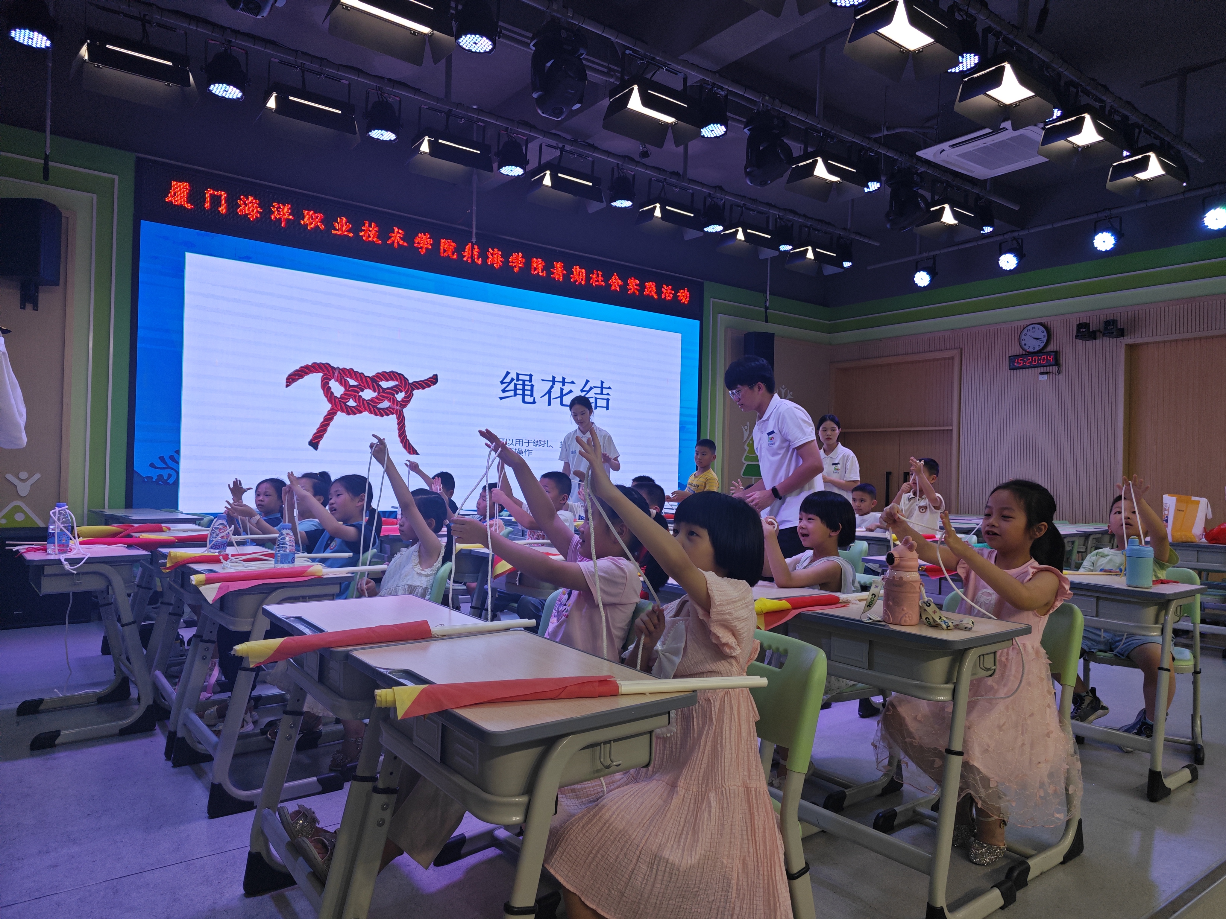 7月10日,在中国航海日来临之际,实践队走进安溪县第五小学开展“逐梦深蓝——海上知识科普”小课堂活动。实践队成员通过讲授特色海丝结、海上旗语等方式,实现航海文化进校园的同时,也让蓝色梦想入心间,真正实现文化与精神的代代相传。课堂上,小朋友们对教学内容反响热烈,积极参与互动,学到了许多海上小知识。义教结束后,实践队和学校签署了共建协议。