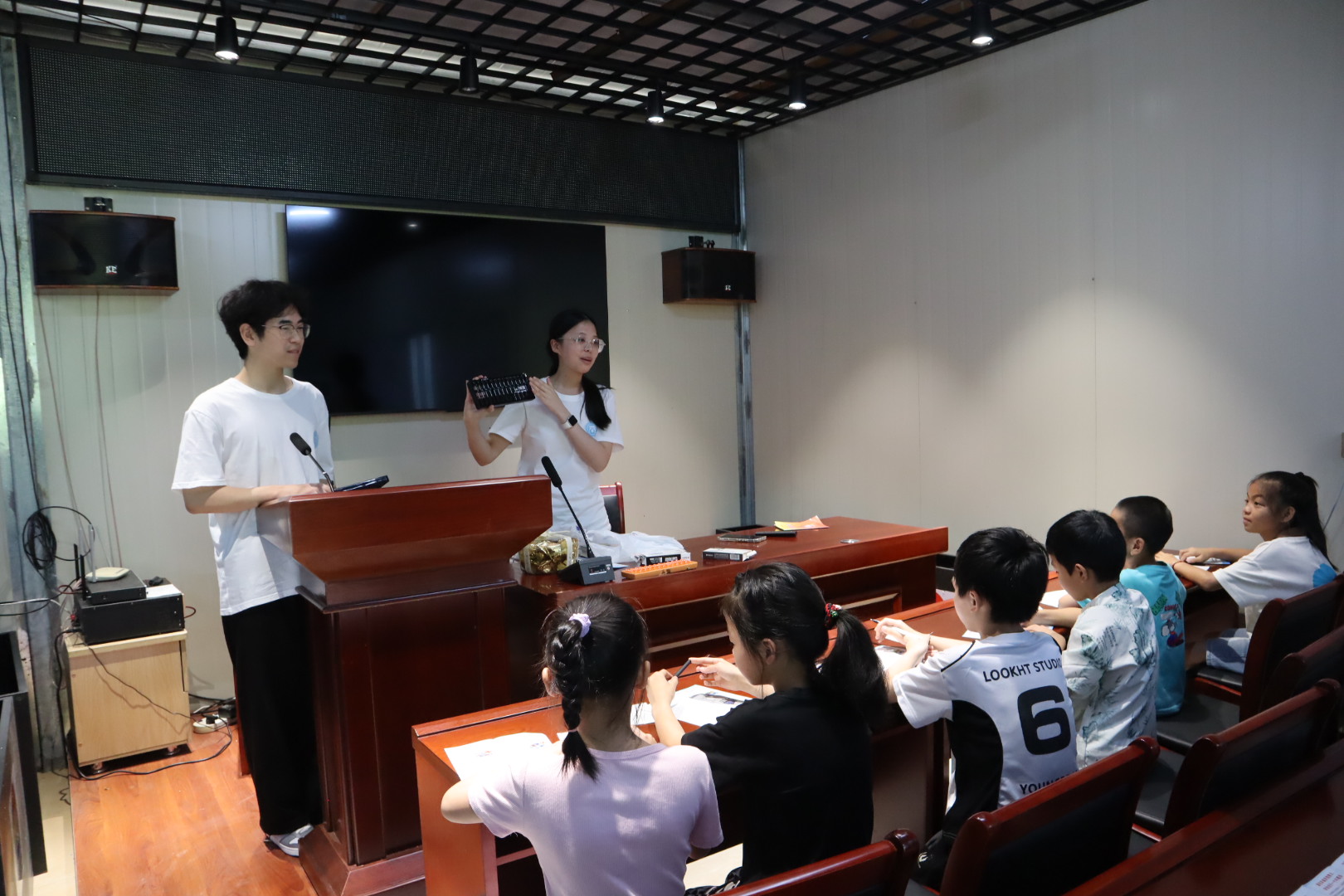 队员们结合专业特色举办了一场珠算活动,带领小朋友们体验珠算的魅力。队员们细心地传授珠算的操作手法与运算法则,在交流互动中,部分同学可以独立完成“小试卷”,学有余力的小朋友还当上了“小老师”主动帮助其他小朋友学习。最后,开展了珠算小竞赛,考查小朋友们的掌握程度,给计算又快又准的小朋友颁发小奖品作为奖励,课堂气氛十分活跃。