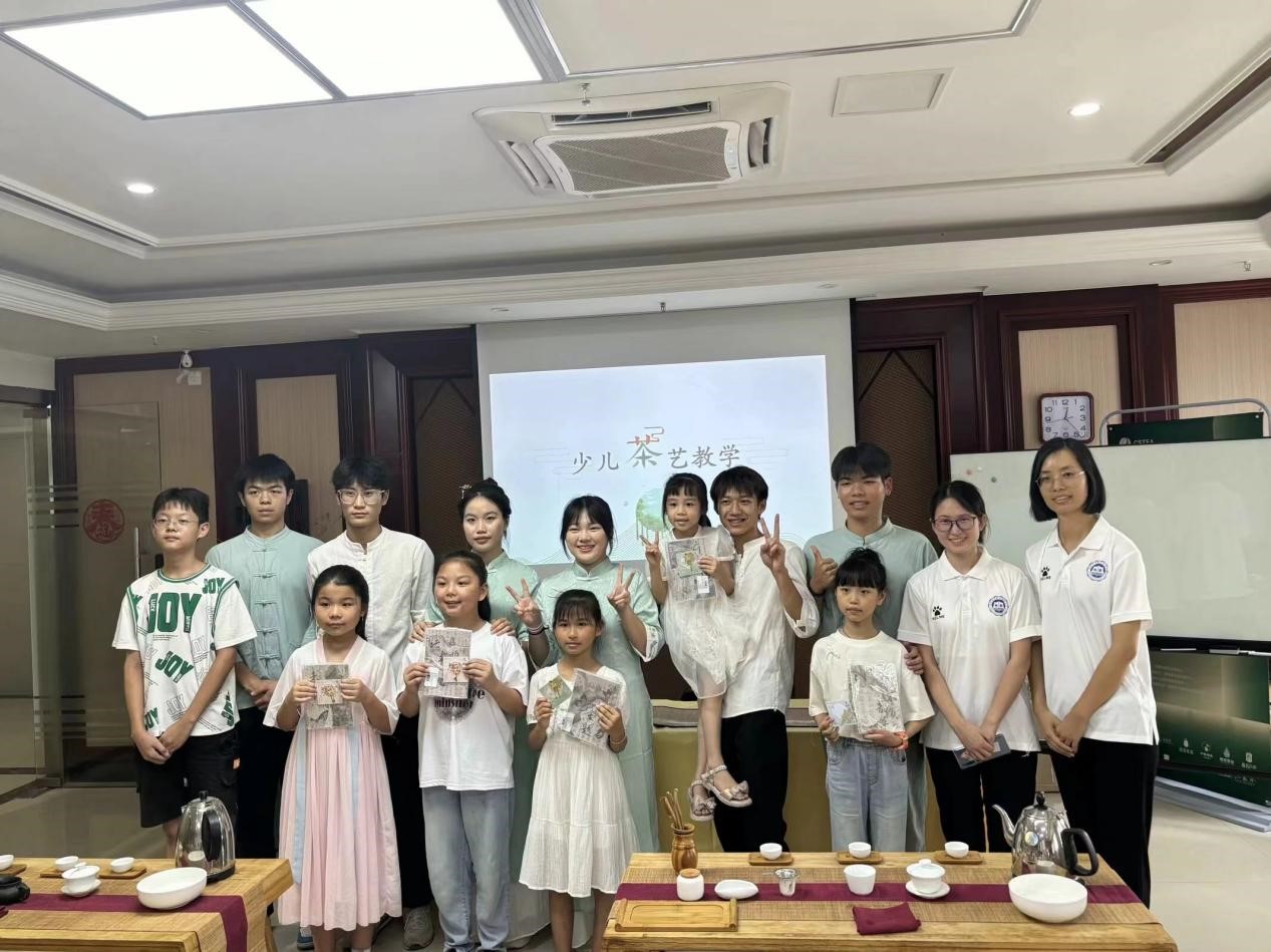 参观完博物馆,在胡燕老师的指导下,实践队为当地小朋友们教授少儿茶艺,耐心讲解泡茶的基本步骤和礼仪,让小朋友们在学习的过程中品味茶艺,增强动手能力和锻炼协调能力,更深入地了解中国传统茶文化,增强文化自信。