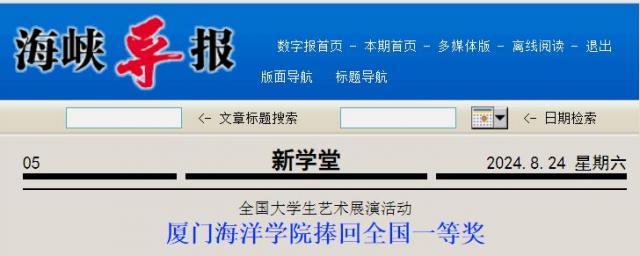 【海峡导报】厦门海洋学院捧回全国一等奖