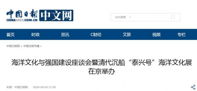 【中国日报】海洋文化与强国建设座谈会暨清代沉船“泰兴号”海洋文化展在京举办