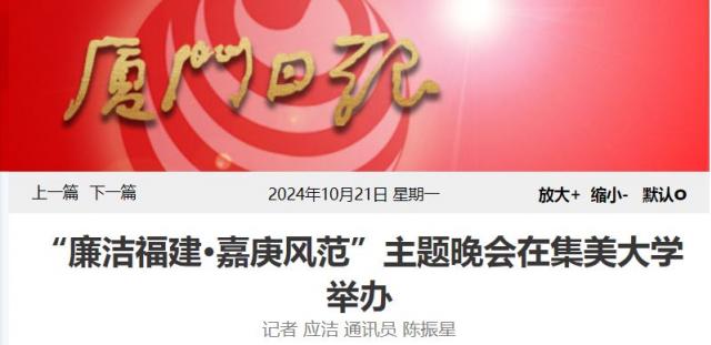 【厦门日报】“廉洁福建·嘉庚风范”主题晚会在集美大学举办