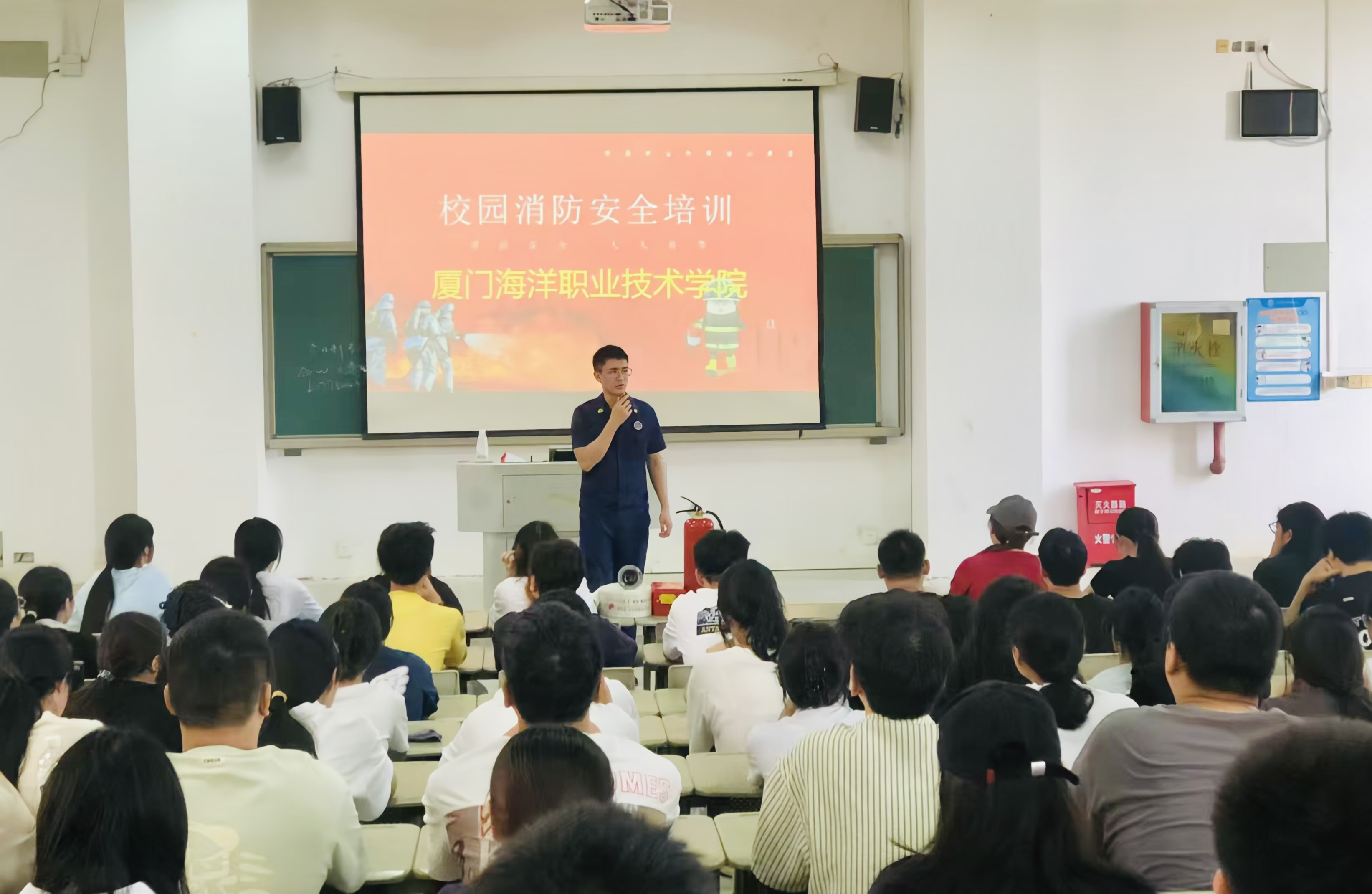 本次安全培训讲座的主讲人是翔安区消防救援大队专职讲解员丘振顺,他以专业的知识和生动的讲解,为大家带来了一场别开生面的消防安全知识盛宴。他详细介绍了消防基本知识,通过一个个触目惊心的火灾案例,让师生深刻认识到火灾的无情,进而增强校园消防安全意识。