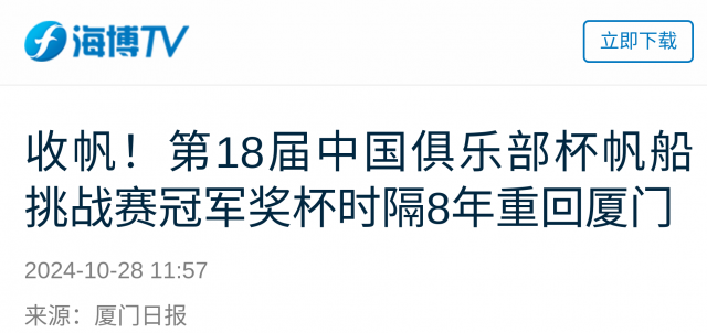 【海博TV】收帆!第18届中国俱乐部杯帆船挑战赛冠军奖杯时隔8年重回厦门