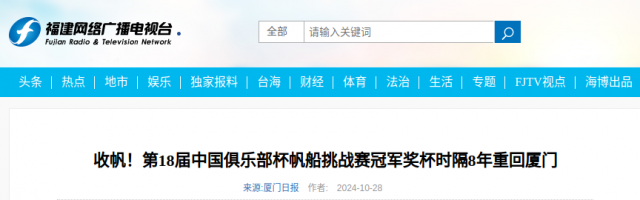 【福建网络广播电视台】收帆!第18届中国俱乐部杯帆船挑战赛冠军奖杯时隔8年重回厦门