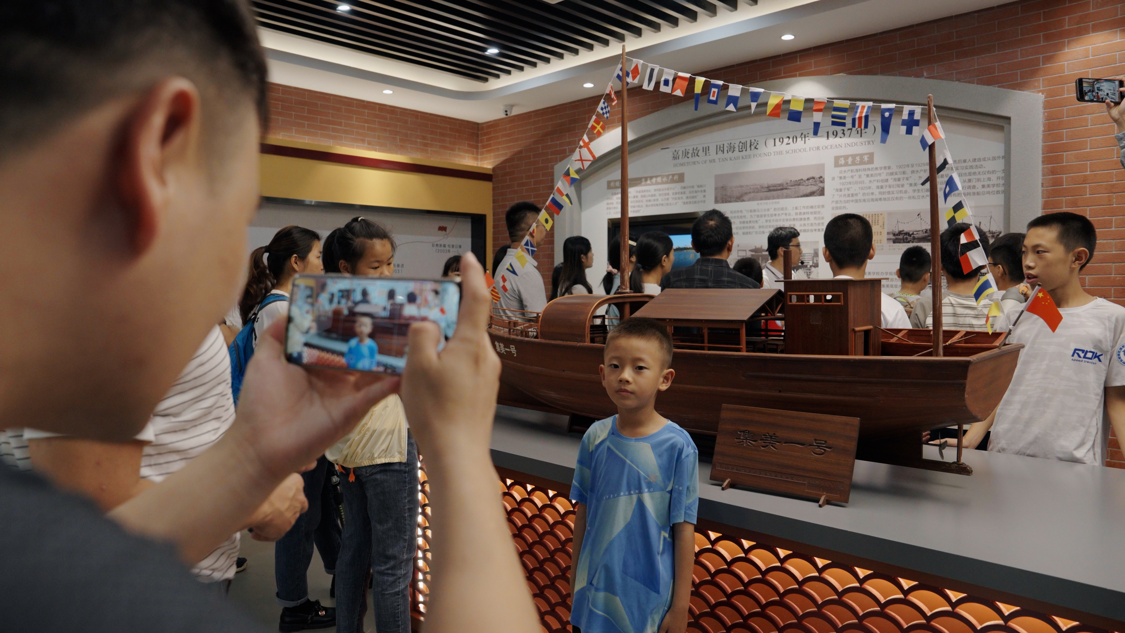 在世界船模文化馆,航海学院洪裕荣老师向青少年展开了一幅舟、筏、船舶、蒸汽船、柴油船演变的历史画卷,讲述东西方航海文化的起源、演变及传承,带领青少年领略郑和七下西洋波澜壮阔的历史片段,描绘蒸汽时代向海图强的历史巨变,讲述现代柴油船时代贸易与和平的互利互赢,感受人类对海洋的探索与征服。
