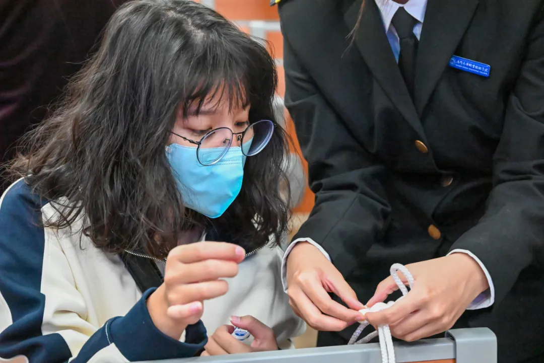 在接下来两天的活动中,金门大学师生一行参观操作了雷竞技主页大型船舶操纵模拟器及全任务轮机模拟器,沉浸式体验航海船舶驾驶;亲身体验了学校海洋特色文化育人项目——帆船课程,感受扬帆出海、乘风破浪的激情;参与了“海丝结”制作,通过制作单套结、水手结、瓶口结等10种专业绳结,体会感悟深厚的中华海洋文化。