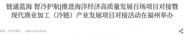 为贯彻落实福建省委省政府关于加快“海上福建”建设工作部署,共同探索渔业加工与冷链产业发展新模式、新路径,12月21日,由福建省海洋与渔业局、福建省制冷学会联合主办的推进海洋经济高质量发展百场项目对接暨现代渔业加工(冷链)产业发展项目对接活动在福州顺利举办。中国工程院院士、中国科学技术大学教授俞汉青通过视频连线致辞。福建省海洋与渔业局党组成员、副局长江毅海,福州市鼓楼区人民政府副区长陈望青,福建省制冷学会理事长郑锦民等出席并致辞。会议由福建省水产设计院院长王剑锋主持。